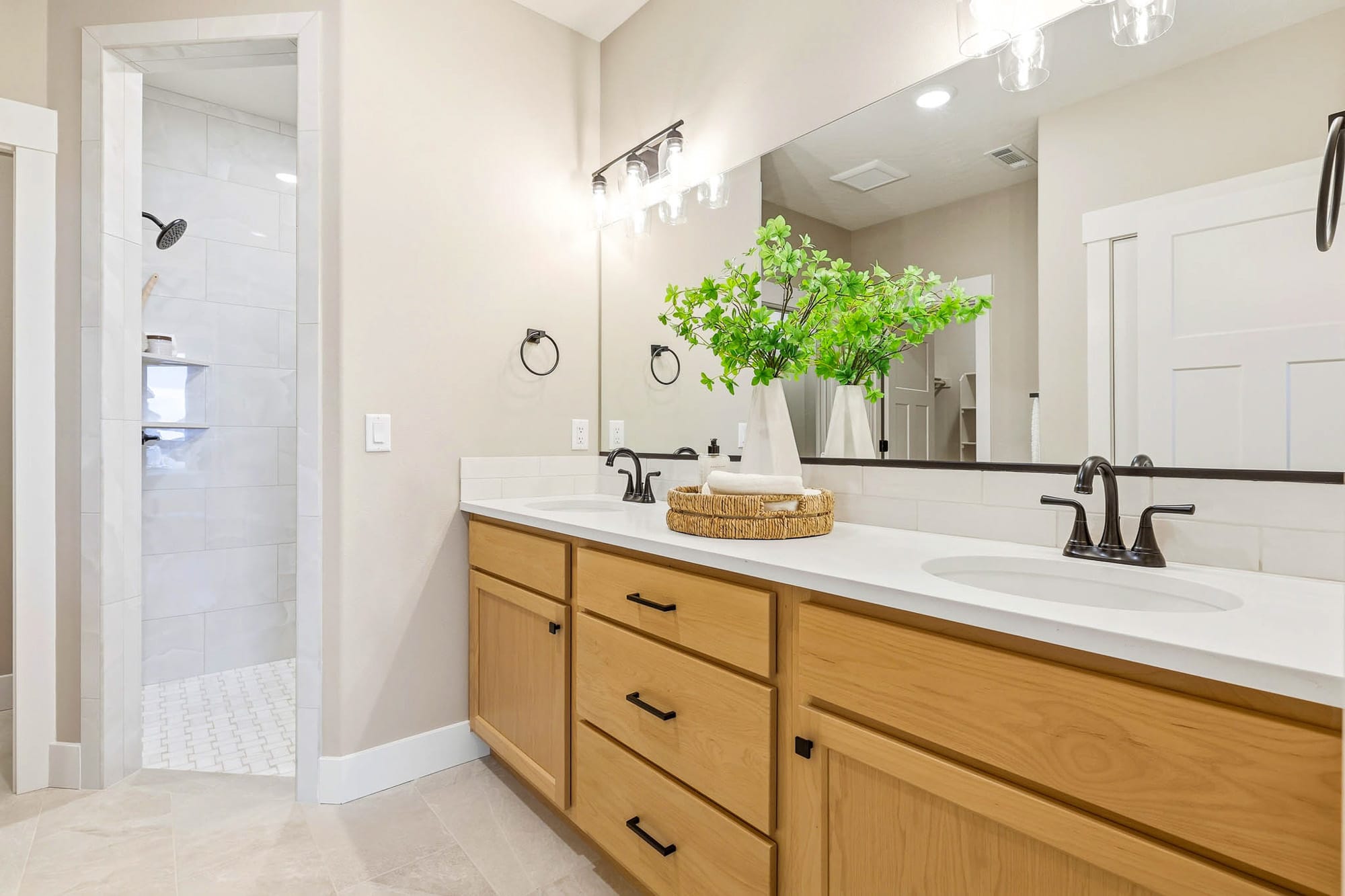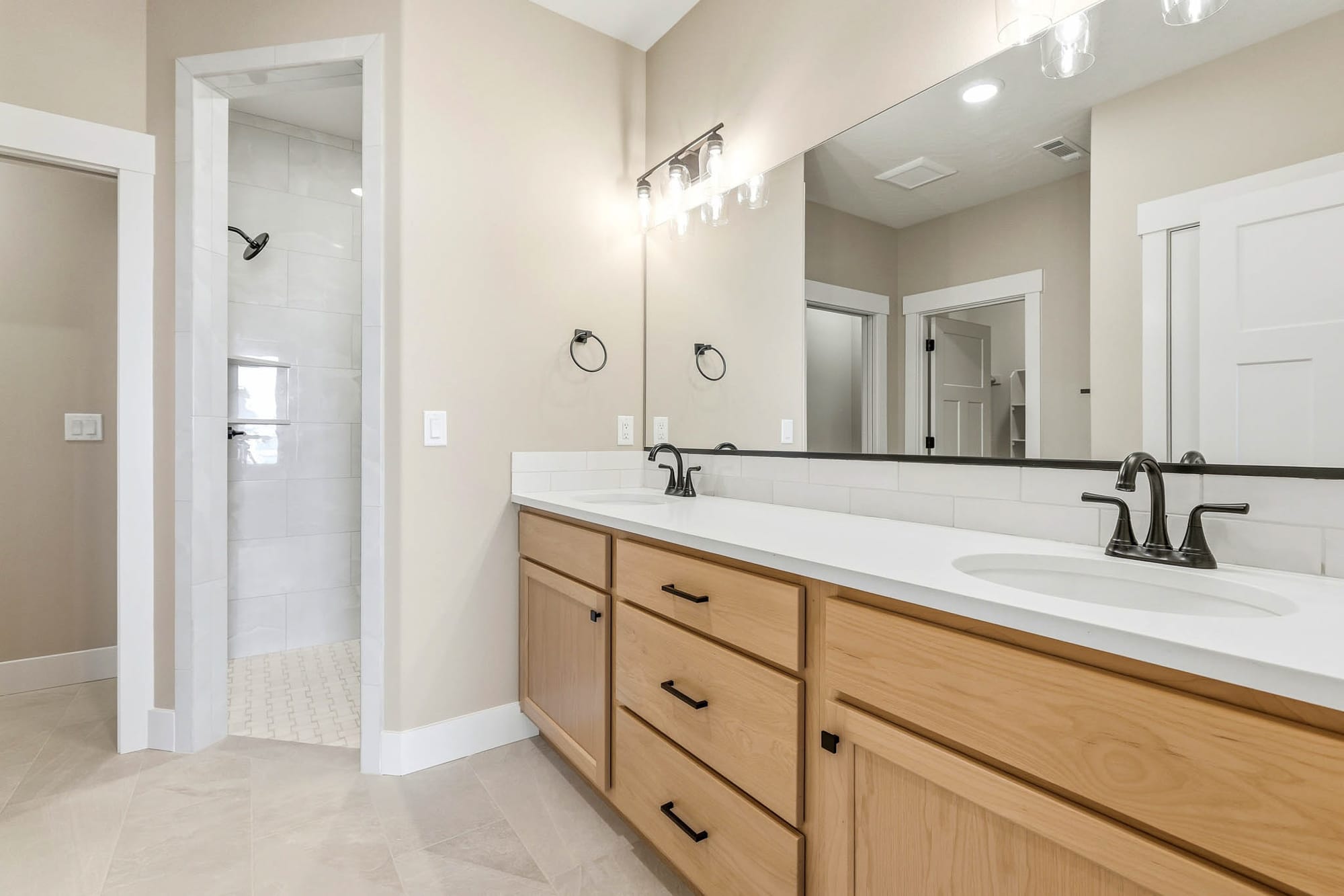 - 5×5 Corner Tile Shower in Master Bath